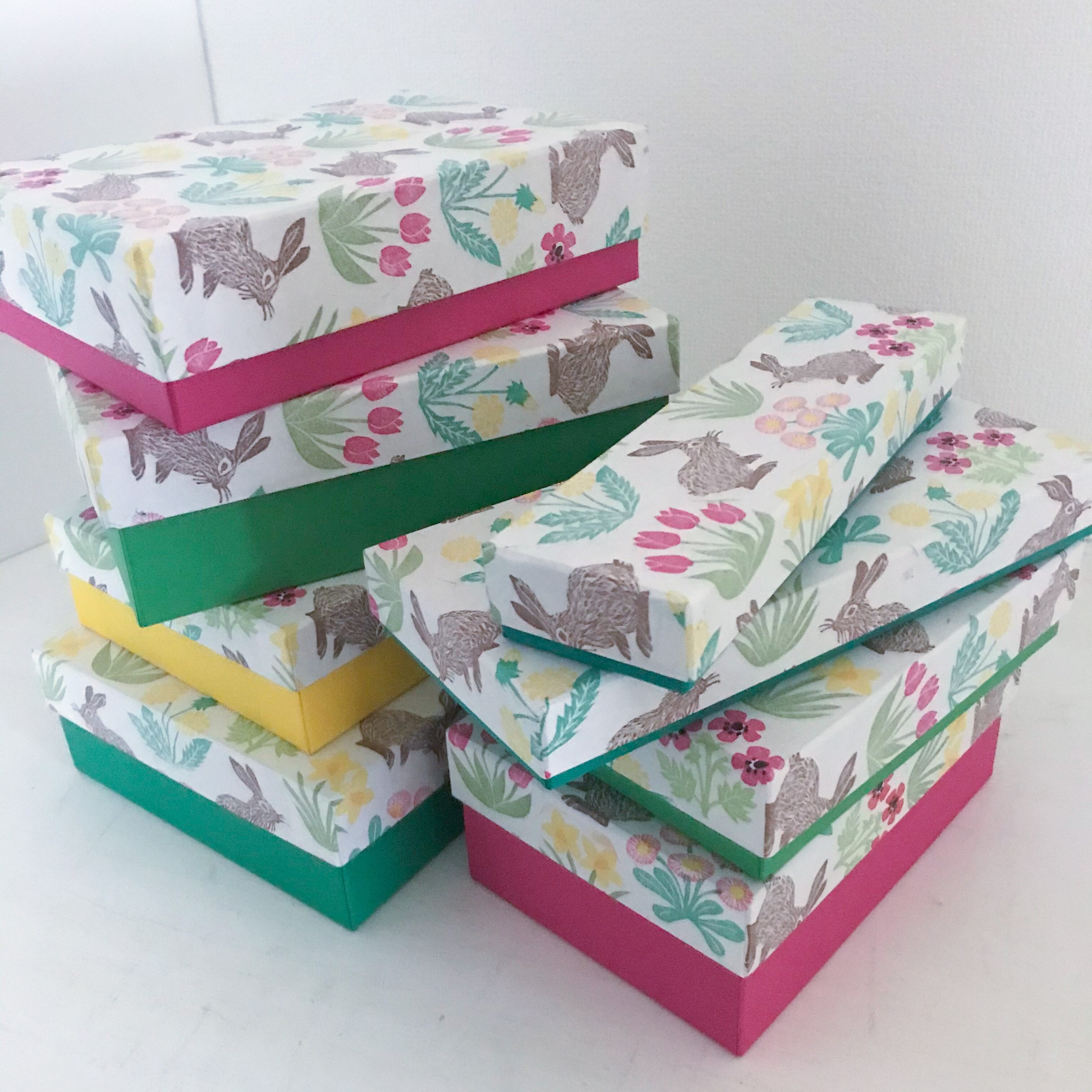 手で彫ったゴム版を押して、一枚一枚作ったオリジナルの紙を蓋に使用しています。